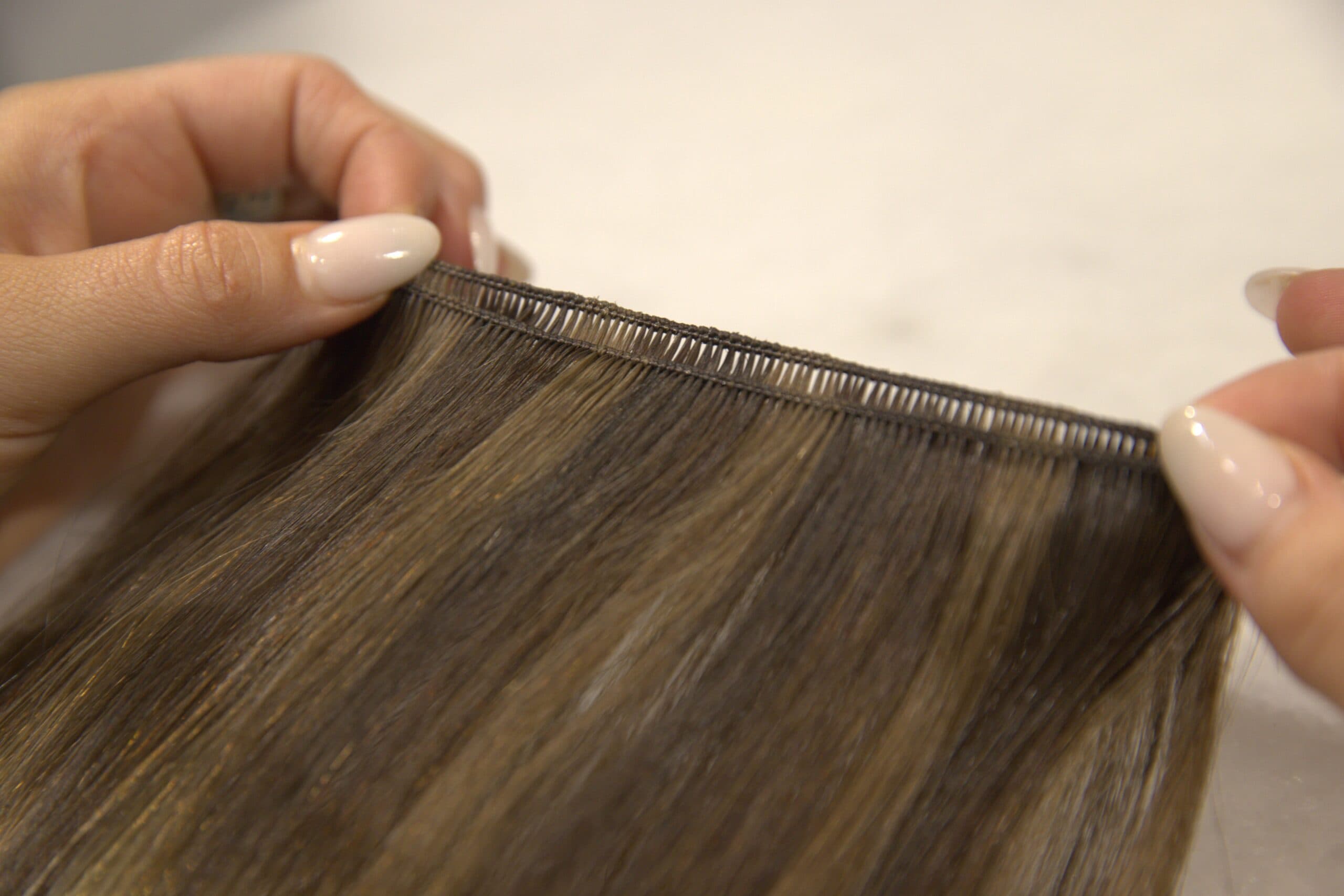 Hand-Tied Hair Extensions, also known as Weft Extensions, involves hand-sewing the product into a comfortable beaded track along the scalp. This method utilises a weft consisting of multiple strands of hair, which are secured using a thread and a small bead or silicone-lined micro ring. Here are some key points to consider: